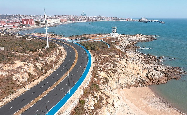 近年来,石狮市以海岸带规划建设为抓手,接续推进通路、造景,以整体环境的优化、服务配套的完善,吸引文旅项目落地,带动乡村文旅振兴,促进交通、旅游、文化、产业多元融合发展。图为航拍下的国道228线鸿山伍堡段。