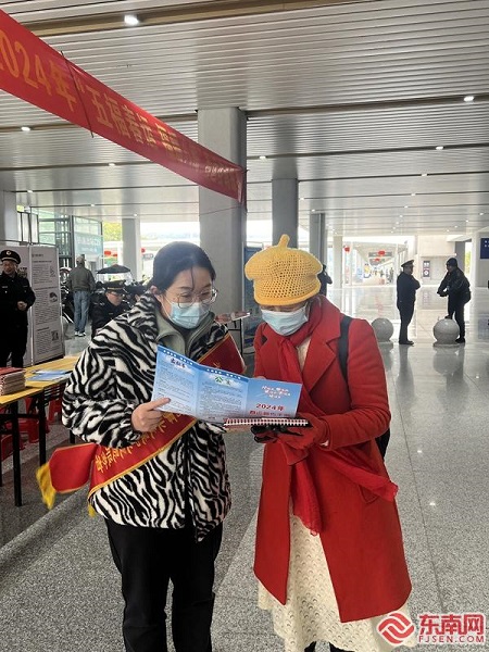 2024年度的春运首日宣传咨询志愿服务活动,在福州火车南站、福州汽车北站、福州汽车西站、福州长乐机场、福州地铁3个站点同步联动开展,记者来到福州火车南站、汽车北站活动现场感受交管部门为返乡的旅客送上的祝福和温暖。