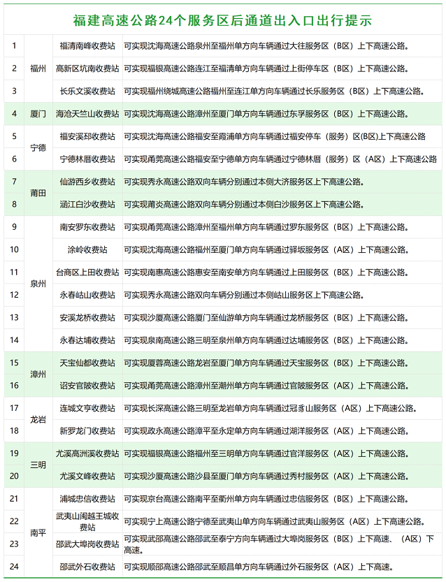 今年春运福建新增24个高速公路服务区后通道出入口,大家可以通过服务区后通道出入口进出高速,缩短回家的路。