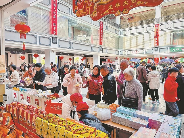 为了迎接春节期间的客流高峰,天福还推出了“文旅大餐”。记者在采访中看到,天福服务区特别开辟了闽台土特产年货一条街,台湾高山茶、牛轧糖、年宵花、手工艺品等各种闽台伴手礼琳琅满目,逛一圈下来,游客大包小包,双手拎得满满的。“唐山过台湾”石雕园内张灯结彩,游客在丰富多彩的游园活动和游戏互动中,拾年味、寻年俗、觅乡愁;在观光茶园里,游客赏樱踏青、品茶制茶,茶香在空气中弥漫;在闽南文化城里,精彩纷呈的民俗表演轮番登场,布袋木偶戏和芗剧舞台前挤满了大人小孩……
