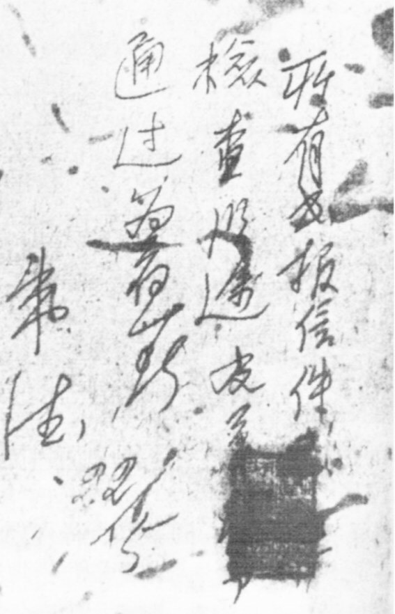 ——1929年5月22日,红四军进军龙岩,途经上杭县古田村,路遇当地邮递员张辑轩,有红军战士拦住他并翻他的邮包强行检查,被朱德军长制止。朱德军长向他道歉,并了解到这里的邮件报纸之所以传递慢,是因为沿途检查次数太多,耽误了不少时间,影响了效率。朱德军长马上从笔记本上撕下一页白纸,用铅笔写了便函(图一):“所有书报信件业经检查,沿途友军准予通过为荷。”张辑轩颤抖双手接过字条,心中激动万分,没想到朱德军长对邮件传递这样的小事也细心过问、妥当安排。之后,有了朱德军长这一手令保护的张辑轩每天背着邮包一路畅通。