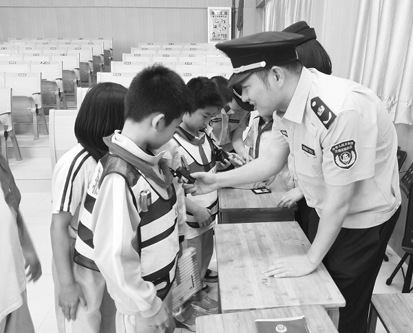 执法队员向学生介绍执法设备。(陈凌 供图)