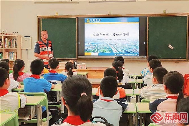 “路政宣传月”路政人员进学校宣传。(厦门公路中心 供图)