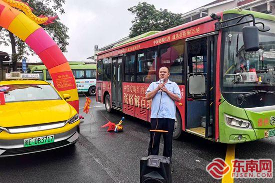 查金明作为驾驶员代表在漳州第十六届高考爱心直通车启动仪式发言