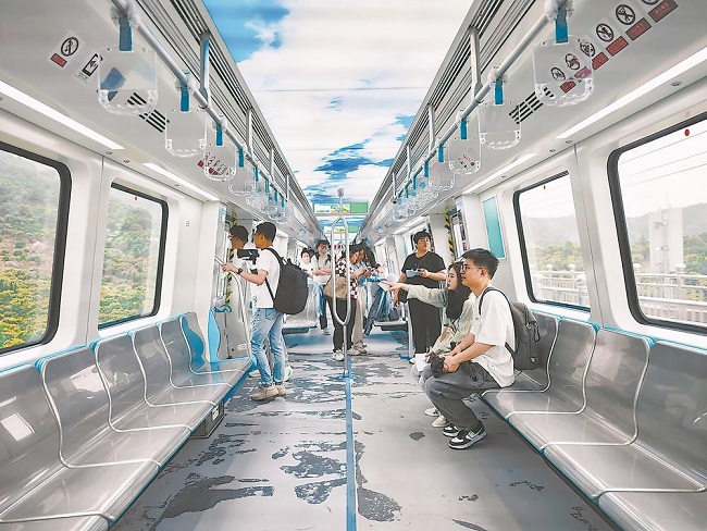 福州地铁滨海快线正式开启全线空载试运行,记者登车体验。(本报记者 施辰静 摄)