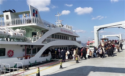 2月22日,在舟山,进出岛的游客络绎不绝。记者从浙江海事局了解到,整个春运期间,浙江水上发送旅客571.9万人次。其中,舟山进出岛总客流突破290万人次,普陀山航线因此成为全国最热门的水上岛际航线,日均客流占全国水上总客流近10%,单日客流占全国水运总客流最大比超20%;宁波“三江夜游”航线共开航超200航次,接待旅客超9000人次,创历史新高;台州春运水上客流量超12.48万人次,椒江至大陈航线春运期间客流量突破2.21万人次,连续7天单日旅客超千人。