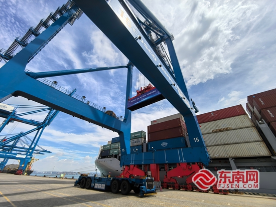 东南网6月23日讯(通讯员 陈尘 林燕 本网记者 谢玉妹) 6月22日上午,在泉州港石湖作业区6号泊位,来自比亚迪江西抚州基地生产的新能源汽车产品,经铁路班列运输至泉州后,搭乘“晴春”集装箱船,通过“泉州港-泰国”外贸航线发往泰国林查班,标志着“抚州-泉州”海铁联运成功首航,闽赣中部物流新通道正式开通运行。