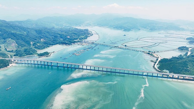 据了解,该路段包含浒屿、盐田港两座跨海特大桥,以及青山大桥牛埕岗隧道、过岭隧道等重点工程,面临地质条件复杂、跨海施工、多枢纽衔接等诸多技术挑战,施工难度极大。中铁十七局宁上高速A4标在青山大桥建设中,创新应用超高性能混凝土(HPFRC)于T梁上部结构,大幅减少了混凝土、钢筋及钢束用量,使桥梁整体结构减重约30%,成为我省首座采用该技术的主线桥梁,社会经济效益显著。
