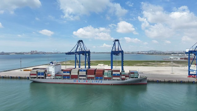 近日,来自比亚迪江西抚州基地生产的新能源汽车产品,经铁路班列运输至福建泉州后搭乘集装箱船“晴春”轮,通过“泉州港—泰国”外贸航线发往泰国林查班(如图),标志着“抚州—泉州”海铁联运成功首航,闽赣中部物流新通道正式开通。