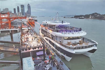 7月25日,全国首艘纯电海上旅游客船“屿见77”轮在厦门和平码头启航,这是该轮入列厦门后的首个航班。