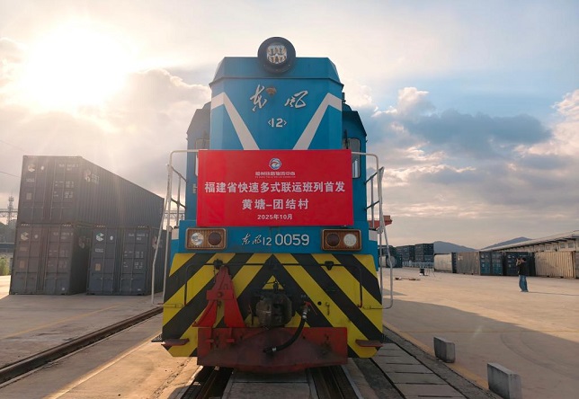 新华社福州10月10日电(记者 周义) 10月10日,一列装载25个集装箱轻工产品的X8666次快速多式联运班列从福建省泉州市黄塘铁路货场驶出,以最高120公里时速开往重庆团结村站。这标志着福建省首列快速多式联运班列正式开行。