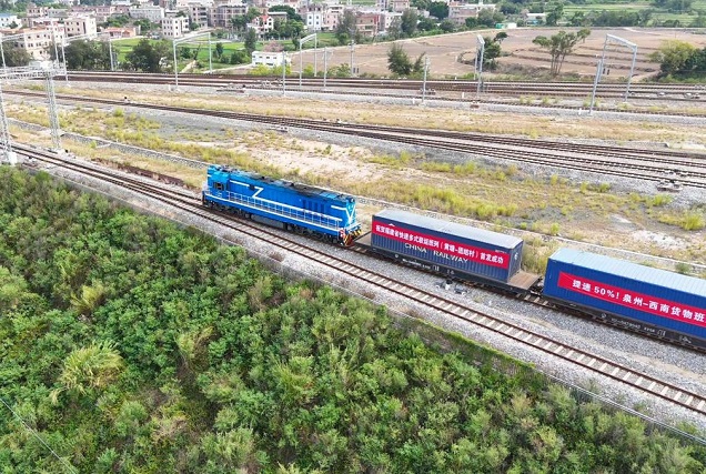 福州铁路物流中心泉州营业部经理蔡万海介绍,该班列采用“公路+铁路”多式联运模式,实行固定线路、固定时刻、固定班次运行。班列线路辐射成都、重庆周边100公里区域,运输时间由原来的46小时压缩至34小时左右,综合运输成本较公路运输降低约25%。