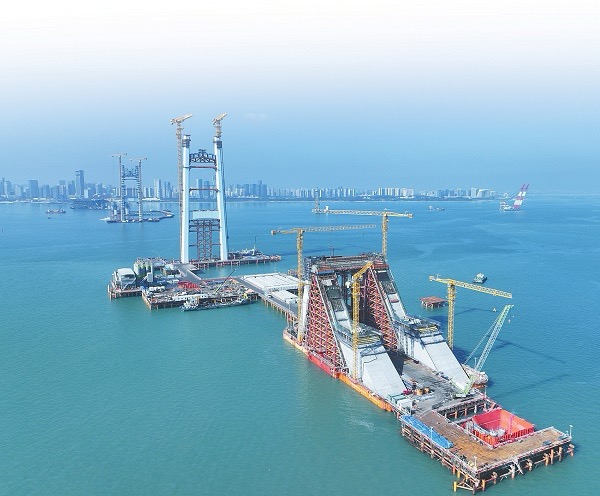 随着刘五店航道桥东主塔封顶,这座福建首座全离岸海中悬索桥已现雏形,项目建设由“立塔成型”正式进入“悬索成桥”的关键阶段。