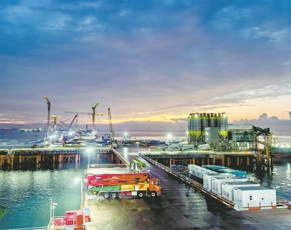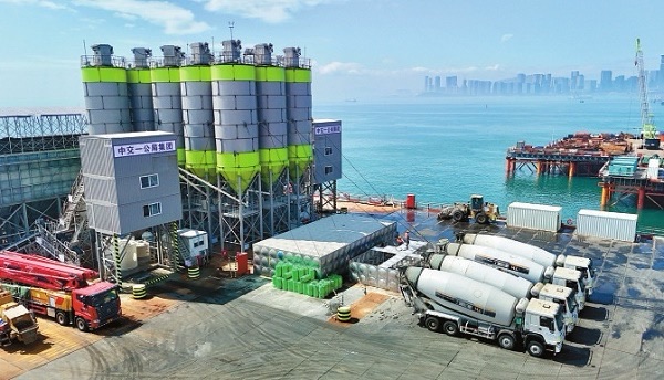 该平台集拌和站、材料堆场、设备维修区及生活保障区于一体,形成集生产、管理、生活于一体的完整系统。这里有几十台机械设备昼夜运转,百余名建设者长期驻守,从原材料进场、设备组装、加工制作到生活起居、施工指挥,每一环都在这片海上生产基地完成。