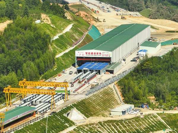 项目将标准化贯穿始终。临建设施如钢筋加工场、预制梁场、小型构件预制场等均按标准化指南建设,其中位于A1合同段的钢筋加工场规模为全省最大,且引入钢材集中加工配送模式,投入智能弯曲中心、焊接机器人等设备,实现“工厂化”生产。施工过程中,路基推行“网格化”填筑与“五度”精细控制;桥梁采用全封闭防护液压爬模、圆柱墩操作平台,杜绝质量问题;隧道则追求最佳光面爆破效果,并应用超高性能混凝土电缆沟盖板,确保内实外美。