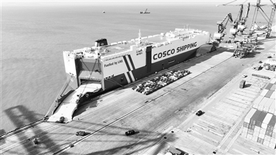 “中国造”车辆正在装船。(本报资料室 供图)