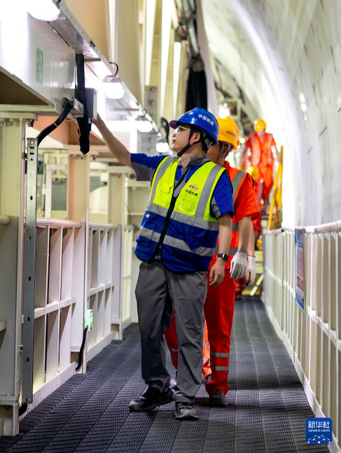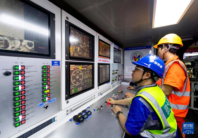 3月4日,中铁十四局工程技术人员在“厦金号”盾构机操作室内作业。