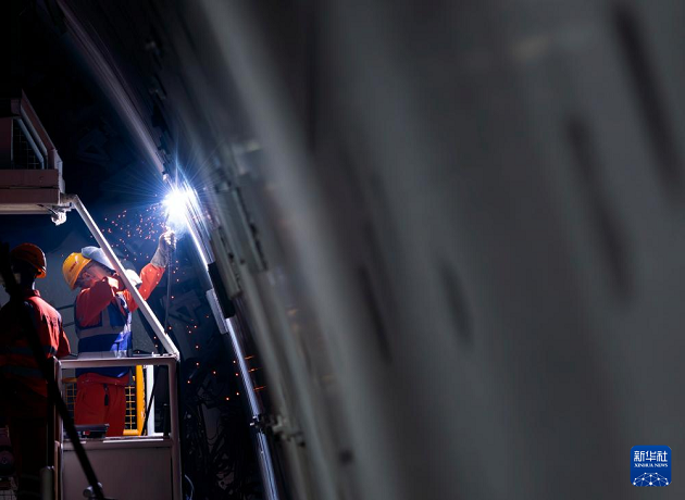 3月4日,中铁十四局工程作业人员在对隧道内管片进行焊接加固。