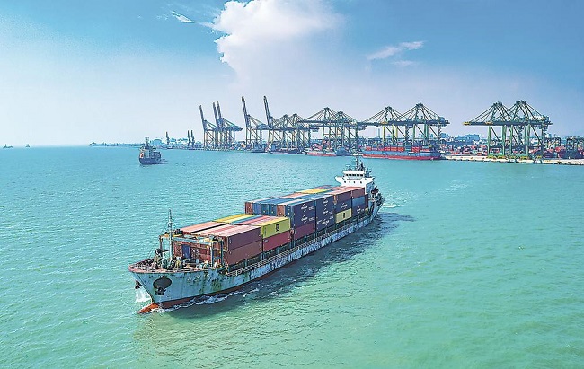 满载集装箱的货轮驶出福州自贸片区江阴港区。(林双伟 摄)