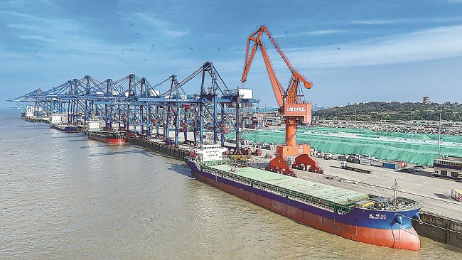 20日,“光明01”轮装载着6654件、重达2822.8吨的工程车辆、发电机组和机械设备,从泉州港石湖港区启航前往冈比亚班珠尔港。此次出口是福建口岸首次采用自航出口船舶“带货交付”模式。图为“光明01”轮靠泊在泉州港作业。