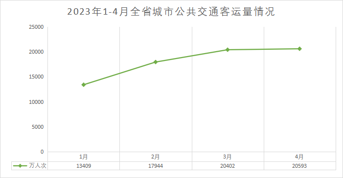 随着疫情防控的平稳转段,城市公共交通客流呈现恢复性增长,4月份全省城市公共交通客运量完成20592.5万人次,同比增长33.7%。其中:轨道交通完成客运量3757.0万人次,同比增长68.5%。1-4月份全省城市公共交通客运量完成72347.3万人次,同比增长4.6%。其中:轨道交通累计完成客运量13024万人次,同比增长36.8%。至4月底全省城市公共交通客运量恢复至疫情前约9.3成。