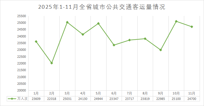 2025年1-11月份全省城市公共交通客运量降幅收窄