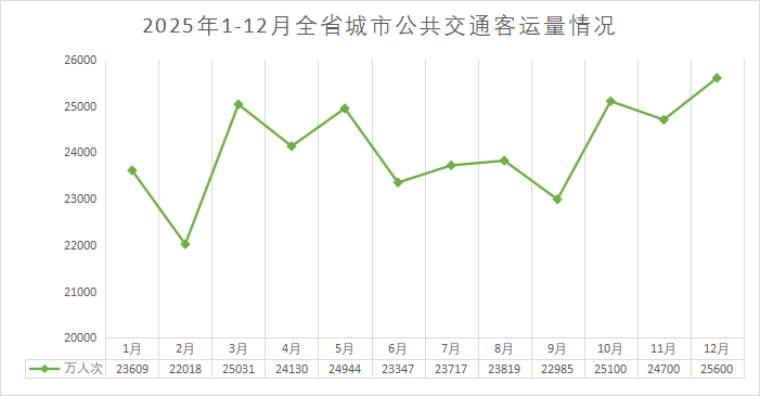 2025年1-12月份全省城市公共交通客运量降幅有所收窄