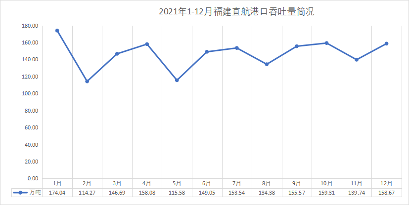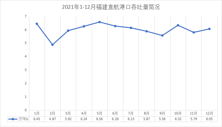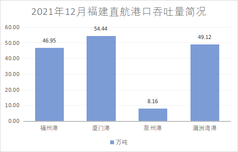 2021年1至12月份,对台货物吞吐量1798.93万吨,同比增长5.69%;对台集装箱吞吐量72万TEU,同比增长8.67%。