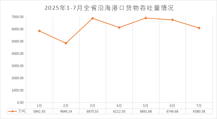 全省港口部门全力克服国际航运联盟重组、美国关税政策波动等不利因素影响,加大营销力度,加强腹地拓展,有效稳定港口生产。1-7月份全省沿海港口货物吞吐量累计完成4.34亿吨,同比增长2.9%,其中:集装箱吞吐量完成1025.14万标箱,同比增长0.4%。