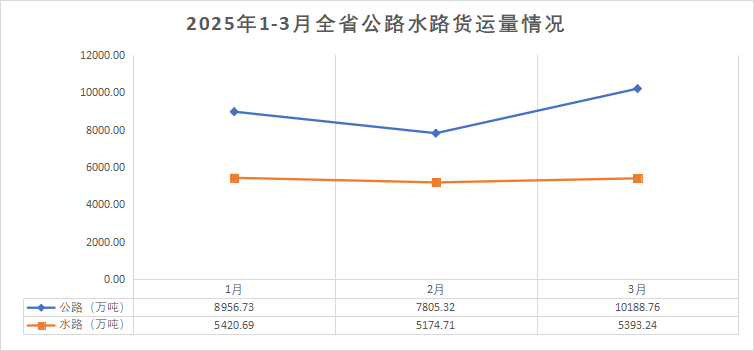 货运平稳增长。随着企业生产经营活动提速,物流需求回升向好,促进全省货运平稳增长。1-3月份全省累计完成水路货物运输量1.60亿吨、2798.62亿吨公里,同比分别增长0.6%和5.2%;完成公路货物运输量2.70亿吨、330.04亿吨公里,同比增长4.7%和5.5%。