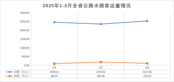 客运稳步增长。在春日经济的带动下,民众出行出游意愿升温,叠加客运服务品质提升,促进全省旅客运输量稳步增长。1-3月份全省累计完成水路旅客运输量385.87万人、2994.98万人公里,同比分别增长7.5%和12.3%;公路旅客运输量完成7340.09万人、旅客周转量28.11亿人公里,同比分别增长2.9%、-0.4%。