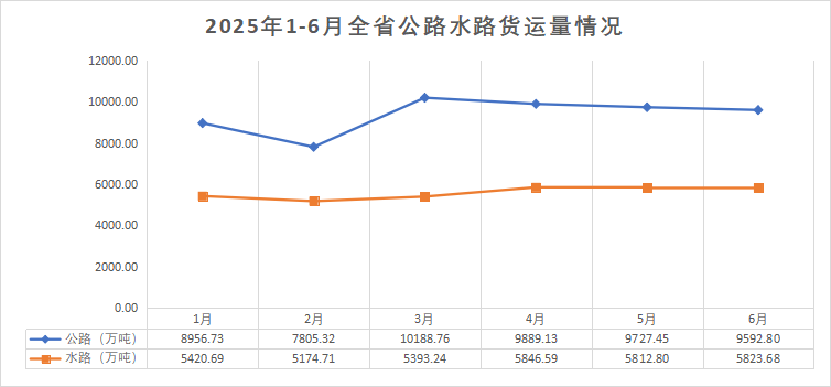 货运保持增长。全省交通运输部门加快建设统一开放运输市场,充分发挥重点运输企业带动效应,有效提高运输效率,有力促进全省公路水路货物运输量保持增长。1-6月份全省累计完成水路货物运输量3.35亿吨、5835.57亿吨公里,同比分别增长1.6%和4.7%;完成公路货物运输量5.62亿吨、691.75亿吨公里,同比分别增长4.4%和3.5%。