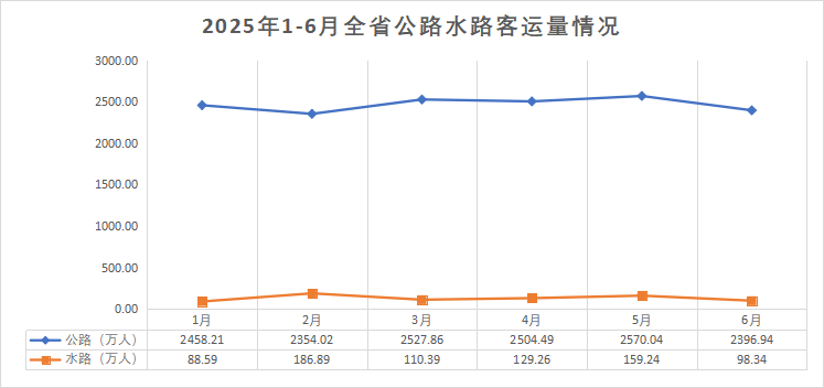 客运运行平稳。全省交通运输部门加大有效运力投放,提升出行服务质量,确保公路水路客运平稳运行。1-6月份全省累计完成水路旅客运输量772.72万人、5960.84万人公里,同比分别增长12.1%和17.6%;公路旅客运输量完成1.48亿人、57.86亿人公里,与上年同期基本持平。