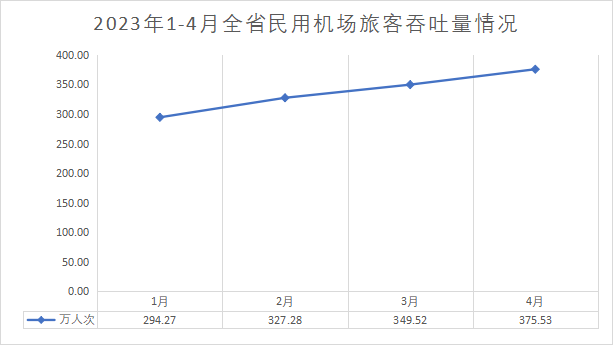 4月份全省民用机场旅客吞吐量完成375.53万人次,同比增长610.5%;全省民用机场货邮吞吐量完成3.64万吨,同比增长20.6%。1-4月份全省民用机场旅客吞吐量累计完成1346.60万人次,同比增长108.4%,增速较1-3月份提高44.7个百分点;全省货邮吞吐量累计完成13.68万吨,同比下降1.2%,但较1-3月份收窄6.1个百分点。1-4月末全省民用机场旅客吞吐量恢复至疫情前7.9成,货邮吞吐量恢复至疫情前8.3成。