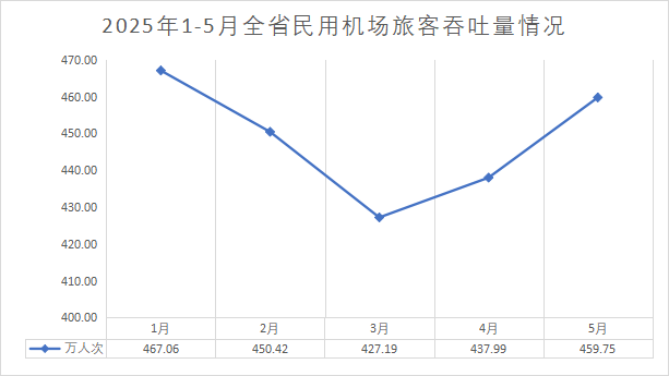 2025年1-5月份全省民用机场生产稳步提升
