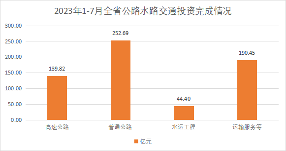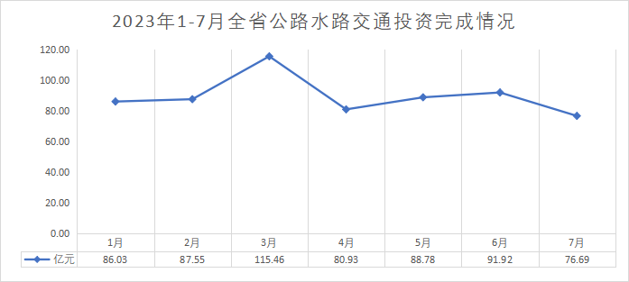 全省交通部门紧紧围绕重点项目,积极开展攻坚行动取得成效,7月全省公路水路投资完成76.69亿元,同比增长4.3%。1-7月份全省公路水路投资累计完成627.37亿元,同比增长0.9%;超序时进度4.4个百分点。其中,高速公路累计完成139.82亿元,低序时进度0.1个百分点;普通公路累计完成252.69亿元,超序时进度4.8个百分点;水运工程累计完成44.40亿元,超序时进度5.1个百分点;运输服务等累计完成190.45亿元,超序时进度7.3个百分点。