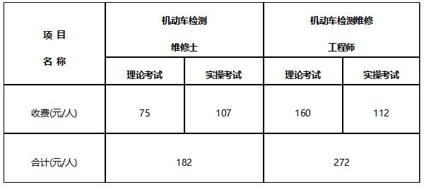 福建省机动车检测维修专业技术人员职业资格考试收费标准表