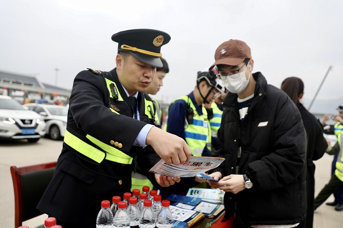 今年12月2日是第十二个“全国交通安全日”,12月1日上午,福州高速执法支队四大队联合省高速集团福州分公司、高速交警六大队等单位,在荆溪收费站及甘蔗收费站出口开展普法宣传活动。