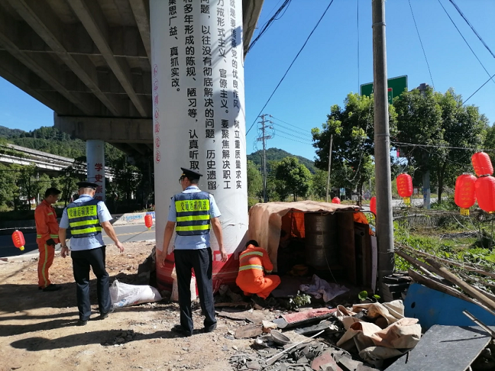 隐患不容拖延,执法人员立即联合养护、路勤部门对桥下空间进行整治。本次联合整治采用“机械+人工”同步模式,先用钩机对违章搭盖进行拆除,再由执法人员对堆积物进行清除,共出动人员8人、机械1台,耗时4个多小时,清理违章堆积和搭盖约10立方米,还原桥下洁净空间。