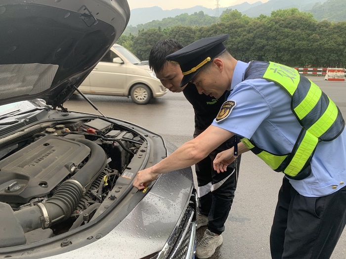 执法人员小心地将孩子抱上执法车,贴心地为他们提供了热水。与此同时,另一组执法人员协助联系救援车辆,协助处置故障车辆,并有序疏导后方车流,确保道路畅通。“真的太感谢了!你们不仅解决了问题,还这么照顾老人和孩子。”被护送至安全区域后,车主连连道谢。
