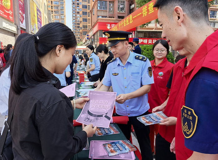 漳州高速执法支队三大队携手高速公路收费站、路勤等“5+N”联动部门组成宣传小队,走进长泰区万豪天悦广场,为社区群众普及公路法律法规。活动现场,宣传小队工作人员精心设置咨询台,为群众答疑解惑;悬挂起醒目的宣传横幅,营造浓厚的宣传氛围;发放内容详实的宣传手册,方便群众随时查阅学习。通过这些举措,多维度、全方位地向群众普及高速公路灾害预防和安全行车知识。执法人员结合实际发生的典型案例,深入剖析超限超载、损坏公路设施等违法行为的严重危害及法律后果,让群众深刻认识到爱护公路设施的重要性。