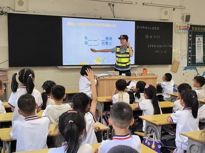 龙岩高速执法支队一大队受邀走进龙岩市第二实验小学,开展“路政知识进校园”活动。课堂上,执法人员化身“护路讲师”,结合PPT、短视频、真实案例和趣味问答,向学生们讲解《中华人民共和国公路法》《公路安全保护条例》等法律法规及高速公路标志牌等道路交通安全知识。执法人员结合生活实例,向同学们阐述破坏公路设施、超限运输等行为不仅影响道路正常使用,还可能引发严重交通安全事故。活动还设置“有奖竞猜”环节,执法人员提出各类有趣的路政知识问题,同学们踊跃答题并领取平安公路共建共享礼包。