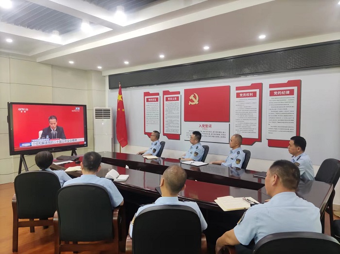 7月19日上午10时,中共中央在北京举行新闻发布会,介绍和解读党的二十届三中全会精神,省交通保障中心及全省各高速执法支队组织干部职工集中收听收看此次新闻发布会,学习党的二十届三中全会精神。