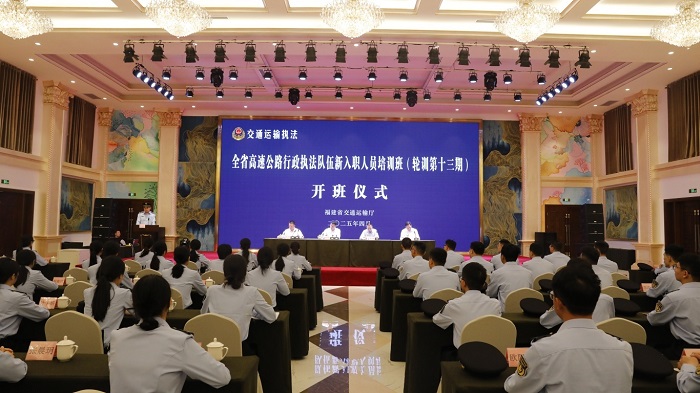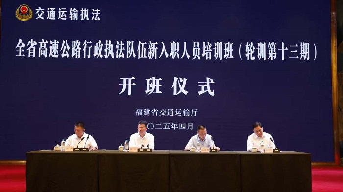 4月15日上午,全省高速执法队伍新入职人员培训班在福州永泰正式开班,来自全省高速执法队伍的104名新入职执法员与16名基层一线业务骨干正式开启为期15天的封闭式集训。中心党委书记、主任陈宇及厅执法监督局副局长郑茂赞、省交通人力资源有限公司总经理张逢桂出席开班仪式,中心党委委员、副主任林森主持。