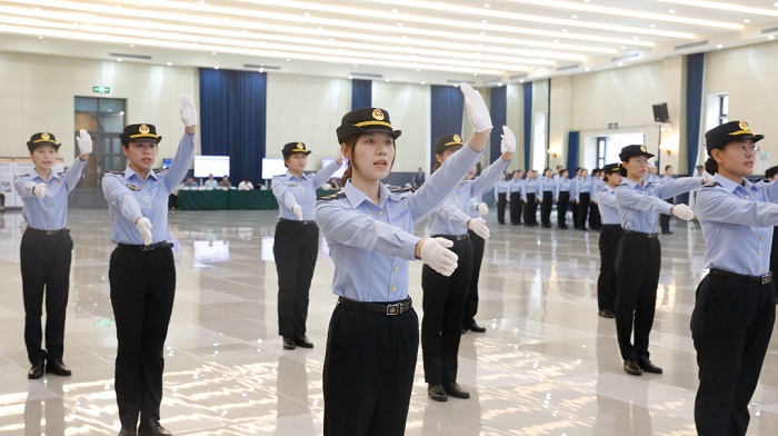本次培训为期15天,包括理论学习与执法训练两部分,课程设置围绕“政治能力建设、路政运政实务、公文写作与舆情应对、消防急救技能”等方面展开,执法训练包括队列训练、交通指挥手势、体能训练及警体拳等科目,旨在通过系统化培训全面提升新人综合素质与专业能力。在培训模式上,创新实施区队长+班长+学员的三级“师带徒”管理,104名新入职人员与16名从基层优选的一线执法教官混编受训,取得了良好成效。