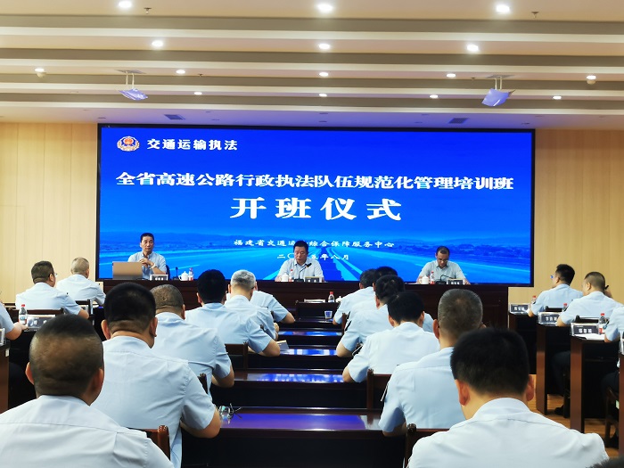 为深入学习贯彻习近平法治思想,提增全省高速公路行政执法质量效能,促进严格规范公正文明执法,加快交通运输法治政府部门建设,8月3日至5日,全省高速公路行政执法队伍规范化管理培训班在泉州举办,各高速公路行政执法支队主要负责人、业务科室负责人及大队负责人等参加培训。