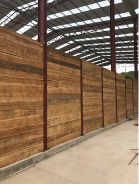 集料隔仓采用新型的装配式钢木隔仓(木头加工字钢的形式),钢木结构可提前进行工厂化生产配件,不受模板和混凝土龄期影响,安装及拆卸方便、进度快,可多次重复利用,减少圬工垃圾,减少资源浪费,提高经济效益。隔仓外围采用假草皮覆盖,四周采用雾化降尘,与周边绿色环境协调一致。
