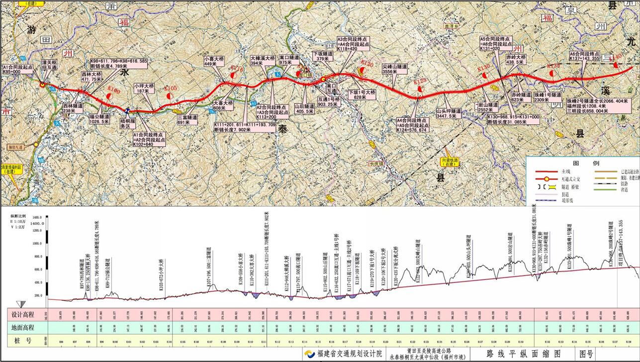 项目起点位于永泰县梧桐镇潼关村附近,设潼关枢纽互通与沈海复线福州至永泰段衔接,线路经过潼关、西林、丘演、三富、溪口、山后、下坂、上际、赤岭、珠峰村等行政村,在珠峰2号隧道内与莆炎高速公路三明段衔接,路线全长42.241公里,按双向6车道高速公路标准建设,设计速度100公里/小时,路基宽度33.5米,批准概算56.88亿元,建设工期3年。