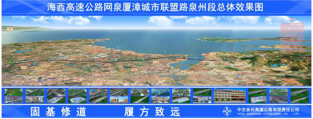 海西高速公路网泉厦漳城市联盟路泉州段项目是海西高速公路网“三环”中泉州环线和“三十三联”中泉厦漳城市联盟路的重要组成部分。路线起于泉州晋江市永和镇福田村附近,设福田枢纽互通接已通车的晋石高速公路围头疏港支线,经晋江市永和镇、安海镇、东石镇,跨安海湾后进入南安市石井镇,设促进枢纽互通接已通车的南石高速公路,终于石井镇坂头村(与厦门交界处),与厦门海翔大道巷东互通相接,总里程27.3km。 本项目是PPP项目, 建设期3年,运营收费期24年。项目设计为双向六车道高速公路技术标准,路基宽33.5m,设计行车速度100km/h。项目估算总造价53.68亿元,批复概算总金额为47.08亿元;其中建安费32.47亿元,安征迁费8.16亿元。