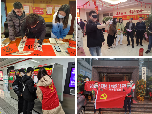 按照省直机关文明办部署,中心文明办及时下载宣传“福星高照·福佑中华”文化主题海报和“福虎”形象,组织全中心上下掀起“福”文化宣传推广热潮:1月21日省福州港中心团委、机关团支部组织开展“多彩迎新春 一起向未来”手写春联迎新春活动,现场感受书法艺术的独特魅力;1月28日机关工会组织开展“迎新春”游园会,联合中国银行仓山支行邀请书法爱好者为干部职工写“福”字贺佳节;1月29日中心党委组织干部职工积极参加省直机关百“福”书法展线上投稿,打造浓厚春节“福”氛围。